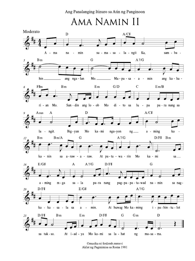 Report Ama Namin Ferdz Bautista. Official Tagalog translation of the Pater Noster as is written in the Aklat ng Pagmimisa sa Roma of 1981. Ferdinand Bautista - Handog Namin Sa Iyo Ama 507.