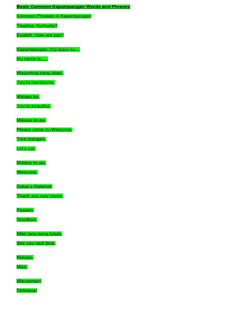 Common Kapampangan Words Phrases