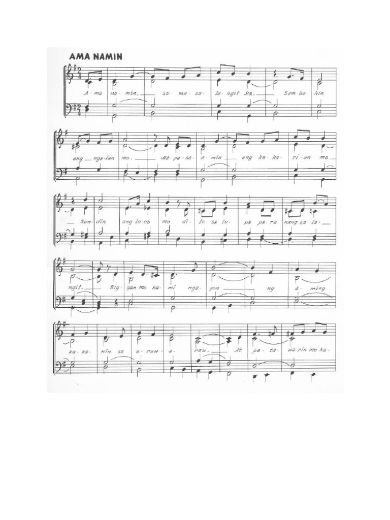 Bigyan Mo po kami ngayon Ng aming kakanin sa araw-araw At patawarin Mo kami sa aming mga sala. Another much better known priest composer of Liturgical Music is reported to have said I would be willing to give up all my compositions and be the composer of the Ama. Nov 21 2016 Vinteres Ama namin sumasalangit Ka sambahin ang ngalan Mo Mapasaamin ang Kaharian Mo sundin ang loob Mo Dito sa lupa para nang sa langit.